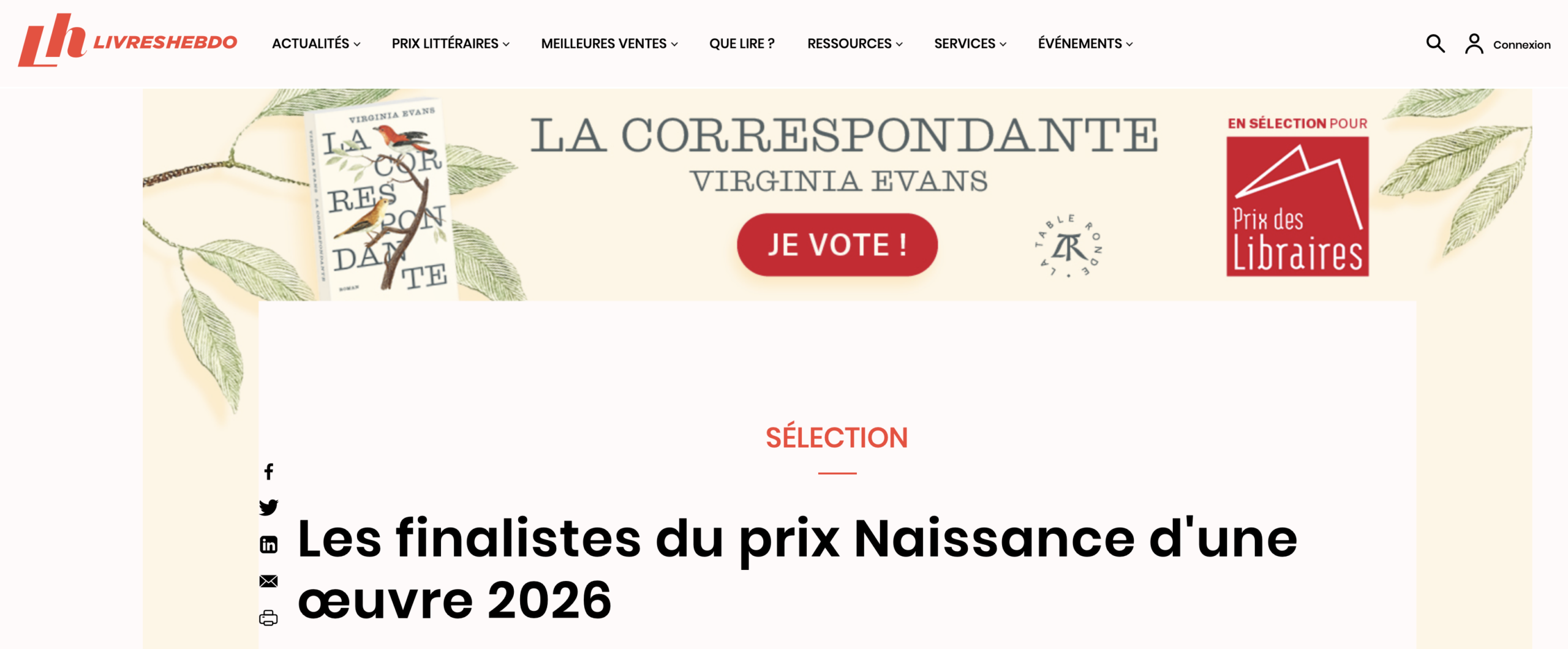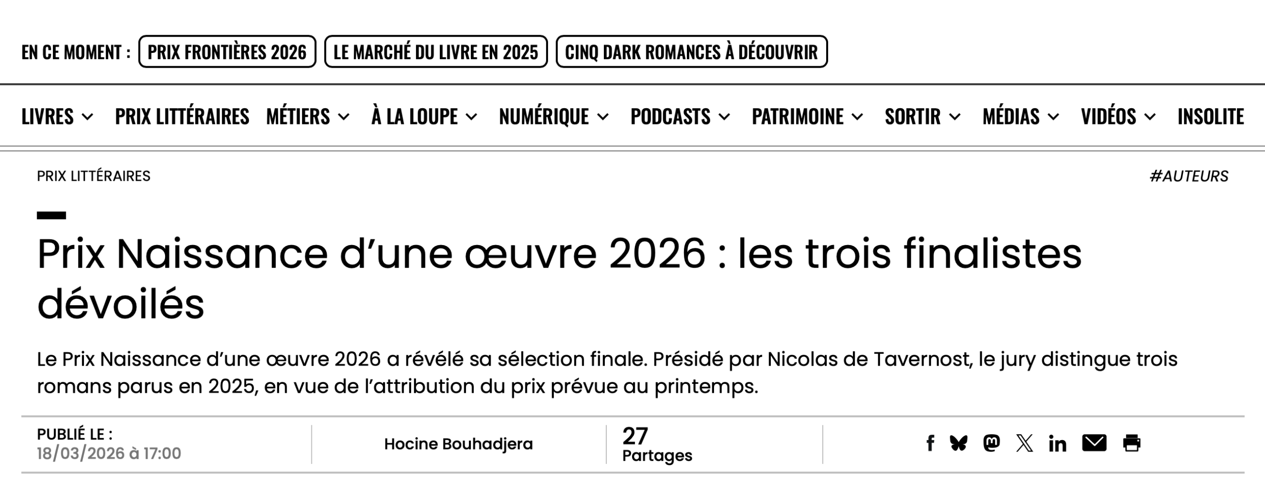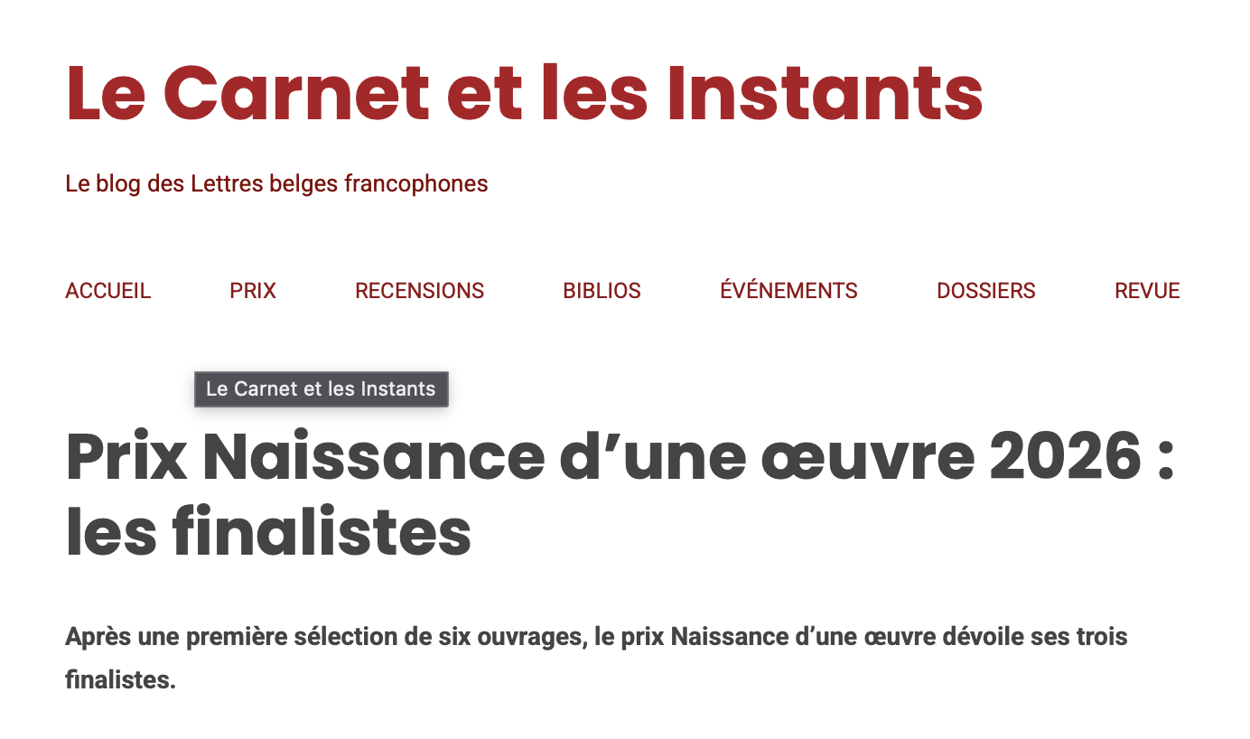 Articles de presse 2026 Prix Naissance d’une œuvre 2026 : la sélection Lire la suite → Prix Naissance d’une œuvre 2026 : les trois finalistes dévoilés Lire la suite → Les finalistes du prix Naissance d’une œuvre 2026 Lire la suite → REMISE DU PRIX LITTÉRAIRE – NAISSANCE D’UNE ŒUVRE Lire la suite → Prix Naissance d’une œuvre 2026 : les finalistes Lire la suite →