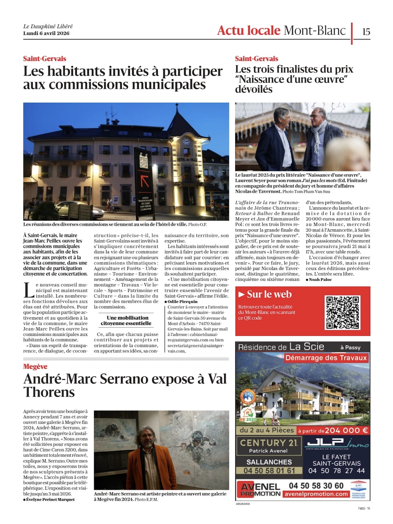 Le lauréat sera annoncé le 20 mai 2026, à l’occasion de la remise du prix organisée à l’Armancette, à Saint-Nicolas de Véroce, face au Mont-Blanc.